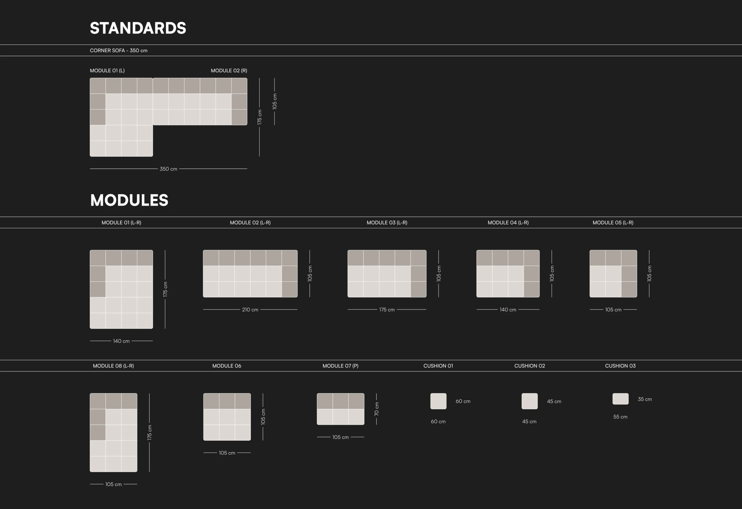 - Standard Corner Sofa Module-01: 350x175xh70 cm